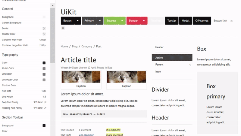 The Theme customizer simplifies your workflow and allows you to add new styles with no need for any CSS knowledge. It is divided into two sections. The left hand vertical bar indicates the settings for the theme and on the right you can see your selected theme. All modifications within the customizer will instantly be displayed in the preview on the right side.